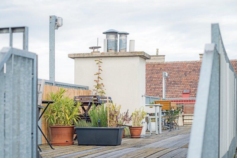 Zusätzlich zur Hofterrasse kann die allgemeine Dachterrasse mit ca. 100qm benutzt werden. Hier haben Sie einen wunderbaren Fernblick über Teile der Stadt.