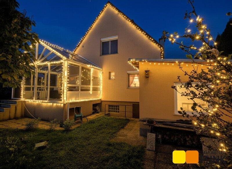 Das im Jahr 1962 in Ziegelmassivbauweise errichtete Einfamilienhaus präsentiert sich in gepflegtem Zustand. Es wurde über die Jahre erweitert, so sind Wintergarten, Garage und zwei Nebengebäude sowie Glashäuser dazu gebaut worden. Das Haus ist zum Großteil unterkellert. Der Keller ist zum Teil als Wohnkeller (Kellerstüberl), zum Teil als Technikraum ausgestaltet. In der aktuellen Grundrissgestaltung bietet das Haus einen großen Wohnbereich und Wintergarten, eine separate Küche, zwei WCs und zwei Bäder, ein großes Schlafzimmer und mehrere Abstellräume.