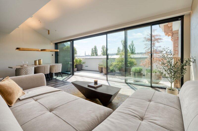 Diese eleganten Dachgeschoßwohnung im Projekt DAS ARMTANN, einem aus 1866 revitalisierter Backsteinbau, besticht durch Ihr visionäres Design und ihre zeitlose Eleganz. Ausgestattet von HOFLEHNER INTERIORS, lässt diese keine Wünsche offen und ist ein wahrer Traum für Designliebhaber.