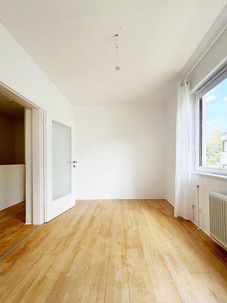 Der Zugang zur Maisonette Wohnung erfolgt über das helle Stiegenhaus mit Atrium im Erdgeschoss des Hauses. Sie verfügt über etwa 78m² Wohnfläche. Im Jänner 2025 wurde die gesamte Wohnung weiss ausgemalt und alle Fenster und Türen gestrichen. Die Fenster wurden vor ein paar Jahren professionell abgedichtet, lassen viel Sonne und Licht hinein und erlauben eine wunderbare Aussicht in den Garten.