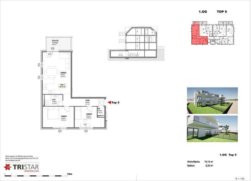 Top 1 (3-Zimmer-Gartenwohnung), gewichtete Fläche: 108,38 m² | Kaufpreis Eigennutzer: € 489.000 | Anlegerpreis netto: € 440.100 | Brutto inkl. 20% MwSt: € 528.120