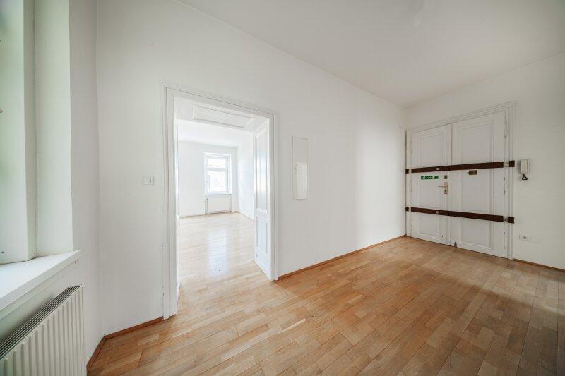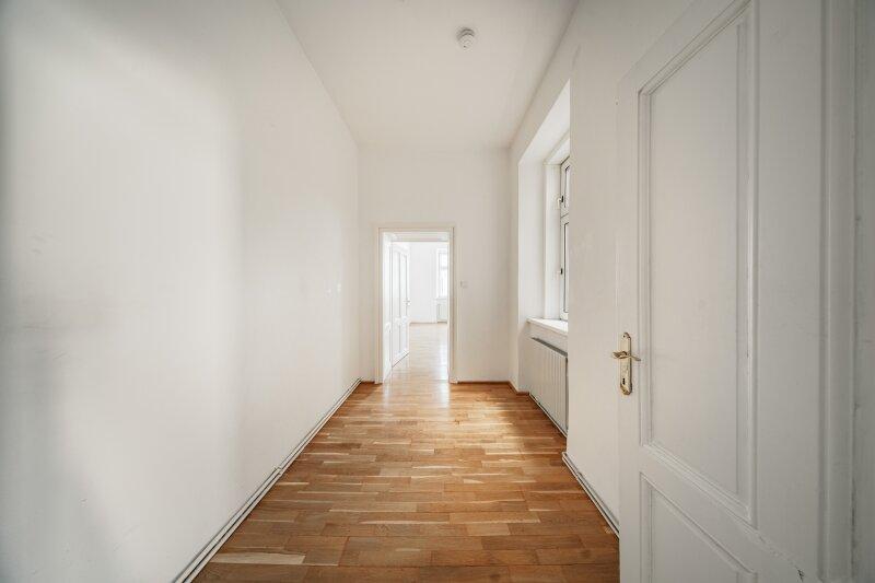 Durch sie Zusammenlegung von den beiden Einheiten im 3. Obergeschoss (= letztes Stockwerk) entsteht eine Wohnung mit 7 Zimmern auf rund 180 qm Wohnfläche. Beide Wohnungen sind straßen- und hofseitig ausgerichtet.