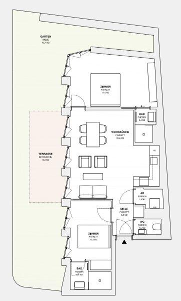 ++ Bei den hier dargestellten Fotos handelt es sich um ähnliche, bereits fertiggestellte Wohnungen des selben Projektentwicklers. Aktuelle Bilder des Projektes MOLLARD50 werden nächste Woche nachgereicht. Der dargestellte Plan/Grundriss ist der der tatsächlichen Wohnung +++