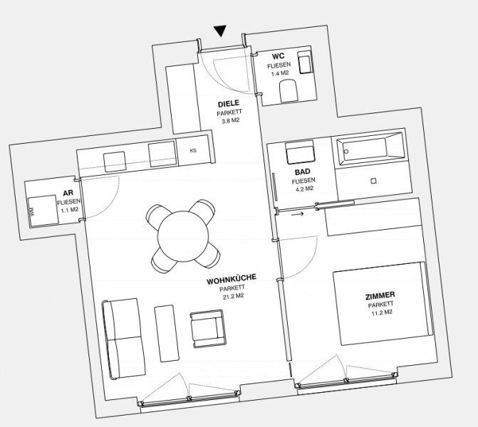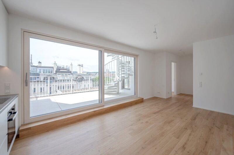 ++ Bei den hier dargestellten Fotos handelt es sich um ähnliche, bereits fertiggestellte Wohnungen des selben Projektentwicklers. Aktuelle Bilder des Projektes MOLLARD50 werden nächste Woche nachgereicht. Der dargestellte Plan/Grundriss ist der der tatsächlichen Wohnung +++