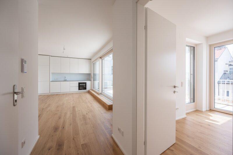 Zur befristeten Vermietung gelangt diese helle, toll aufgeteilte und sehr hochwertig ausgestattete ca. 43 m² große 2-Zimmer Neubauwohnung in einem einzigartigen Neubau in toller Lage des 6. Wiener Gemeindebezirks!