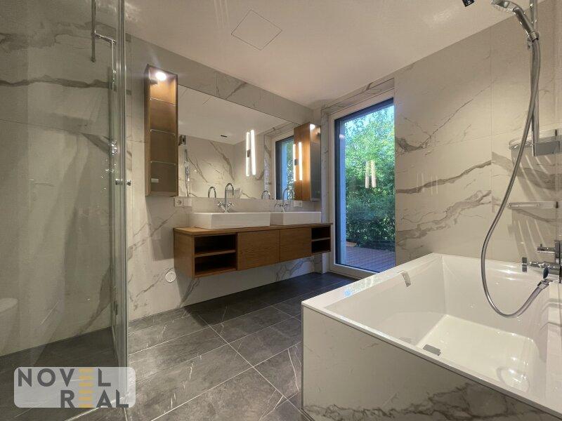 - komplett ausgestattete, exklusive Bäder samt Waschtisch-Verbau und Spiegelschränken