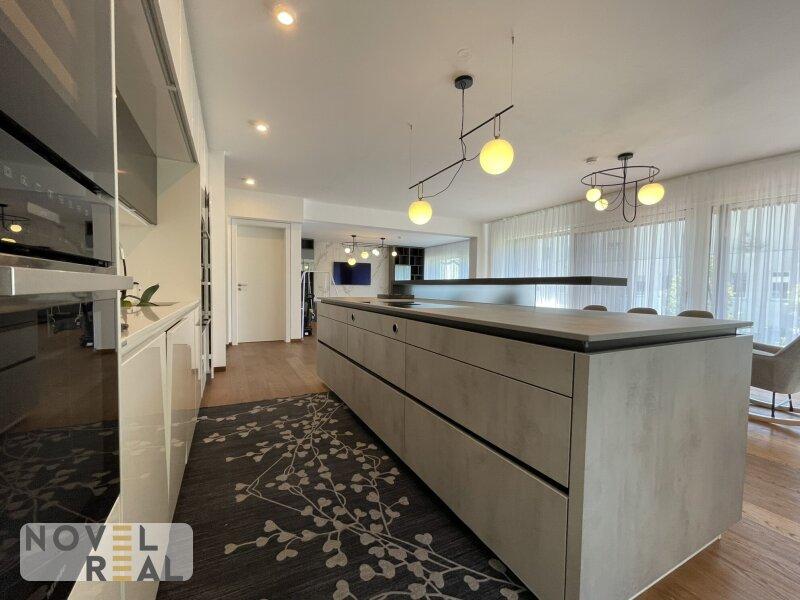 Schon beim Betreten der Wohnung werden Sie von einer hochwertigen Ausstattung und einem modernen Design empfangen. Der offene repräsentative Wohn- und Essbereich mit integrierter Einbauküche ist lichtdurchflutet und bietet ausreichend Platz für gemütliche Abende mit Freunden und Familie. Die Fußbodenheizung sorgt für wohlige Wärme an kalten Tagen und die Zentralheizung für ein angenehmes Raumklima. Die geschmackvollen Fliesen- und Parkettböden verleihen der Wohnung eine elegante Note.