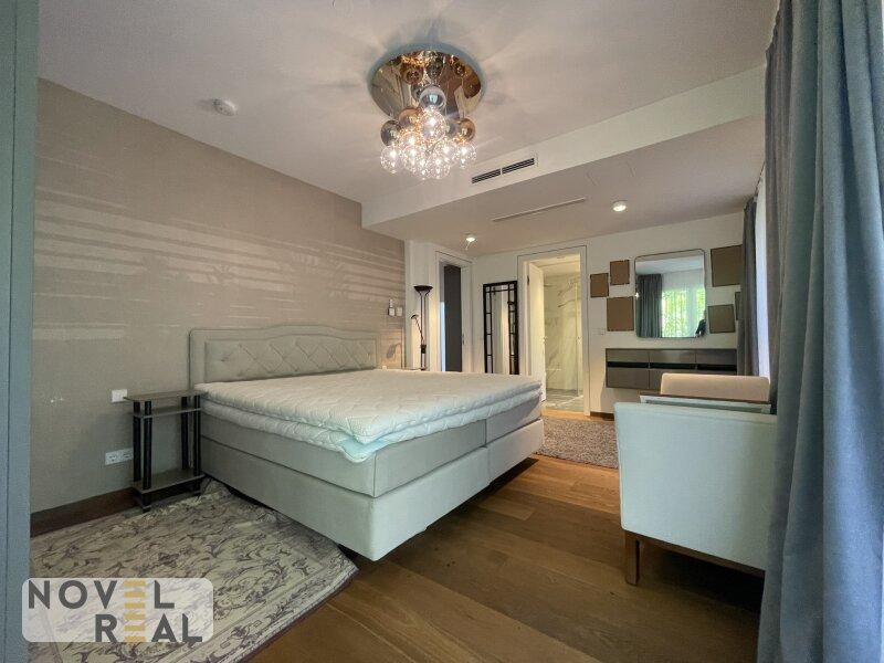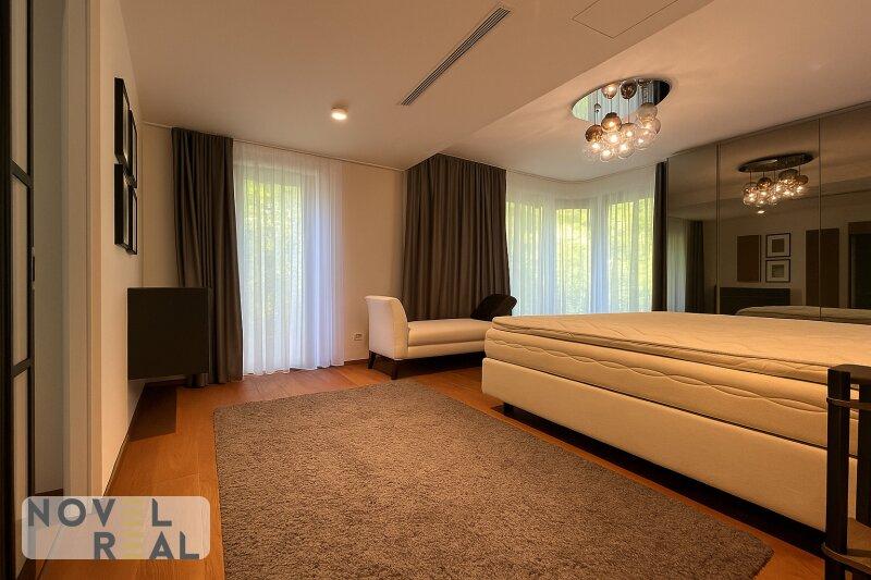 - Master-Bedroom mit eigenen Badezimmer, Toilette, Regendusche, begehbare Garderobe und direkten Ausgang in den Garten