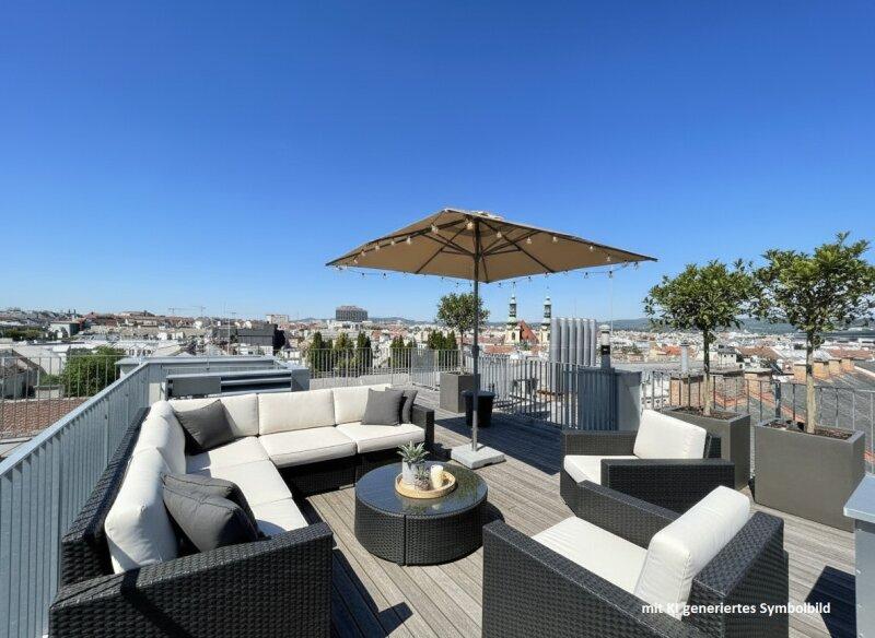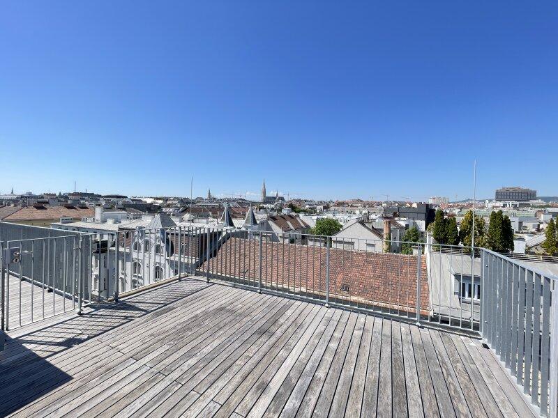 Von hier eröffnet sich ein atemberaubender Rundumblick über die Wiener Skyline ein Platz, der zu jeder Tageszeit begeistert und sowohl Ruhe als auch einzigartige Momente über den Dächern Wiens verspricht.