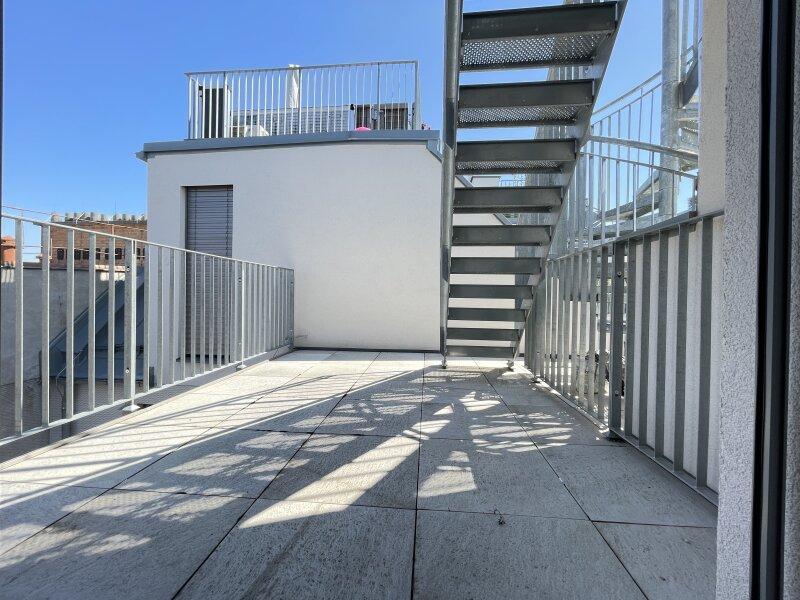 Das absolute Highlight der Immobilie ist jedoch die beeindruckende Dachterrasse mit rund 43 m², die über eine Treppe im Außenbereich erreichbar ist.