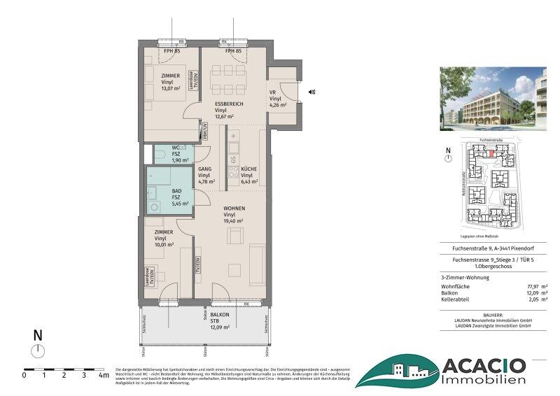 Diese lichtdurchflutete, freundliche 3-Zimmer-Neubauwohnung verfügt über ca. 77,97m² Wohnfläche und rund 12 m² Balkon.