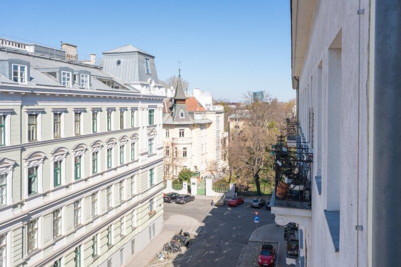 Durch das kürzlich sanierte Stiegenhaus gelangen Sie mit einem Personenlift in den 3. Stock der großzügig geschnittenen Wohnung, die sich über eine Wohnfläche von 115,84 m² erstreckt. Das Objekt gliedert sich in einen Vorraum, durch den Sie in die separate Küche sowie ein Kabinett gelangen, einer separaten Toilette, einem Badezimmer mit Badewanne sowie 3 großzügigen Wohnräumen sowie 2 Balkone. Die südliche Ausrichtung der Wohnung sorgt für ein helles Wohlfühl-Ambiente.