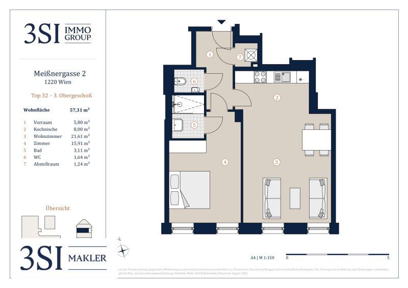 Dieser traumhafte 2-Zimmer Erstbezug verfügt über knapp 58 m² Wohnfläche im 3. Liftstock eines generalsanierten Hauses. Die Wohnung besticht durch ihren durchdachten und geräumigen Grundriss und teilt sich wie folgt auf: