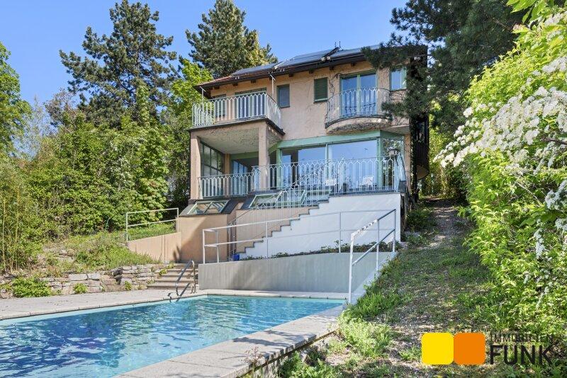 Eine Rarität, wie sie nur selten auf dem Immobilienmarkt zu finden ist, gelangt zur auf 5 Jahre befristeten Vermietung. Eine Villa in sehr schöner Südhanglage von Gießhübl. Eine schönere Aussicht werden Sie kaum mehr finden. Das ursprünglich von einem namhaften Architekten in den Jahren 1995/96 für seine Eigennutzung errichtete Villengebäude bietet Platz für mehrere Generationen in einem Gebäude. Die Immobilie präsentiert sich in gepflegtem Zustand und verwöhnt mit einer Vielzahl an durchdachten Details.