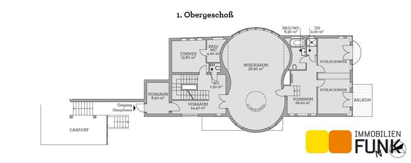 im 1. Obergeschoss: ca. 150 m² plus 2 kleine Balkone, Doppelcarport und gepflasterter Vorplatz