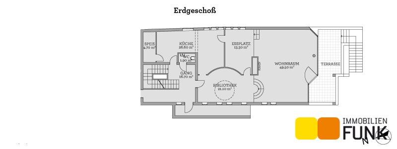 im Erdgeschoss: ca. 142 m² plus ca. 20 m² Terrasse, teilweise überdacht, Abgang zum Pool und Garten