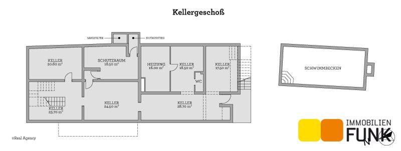 im Kellergeschoss: ca. 169 m² inklusive Atomschutzraum und Technikraum, Ausgang zur Poolterrasse und zum Garten