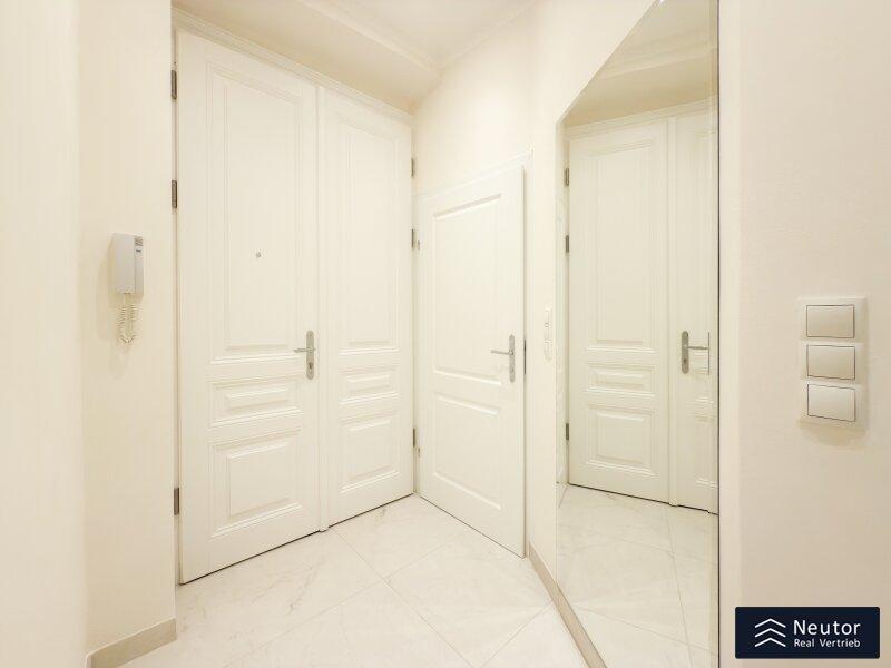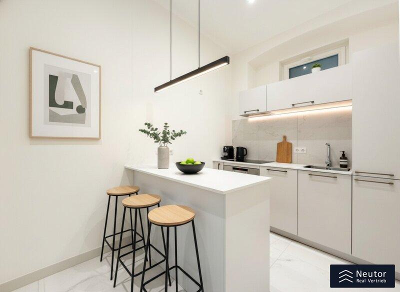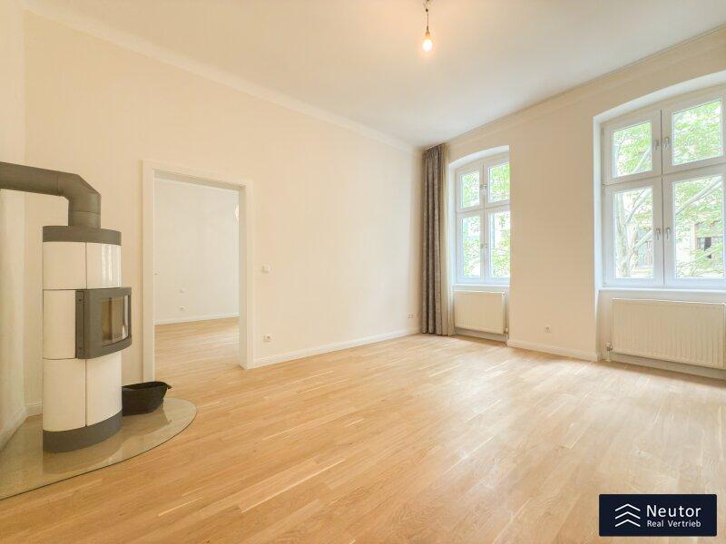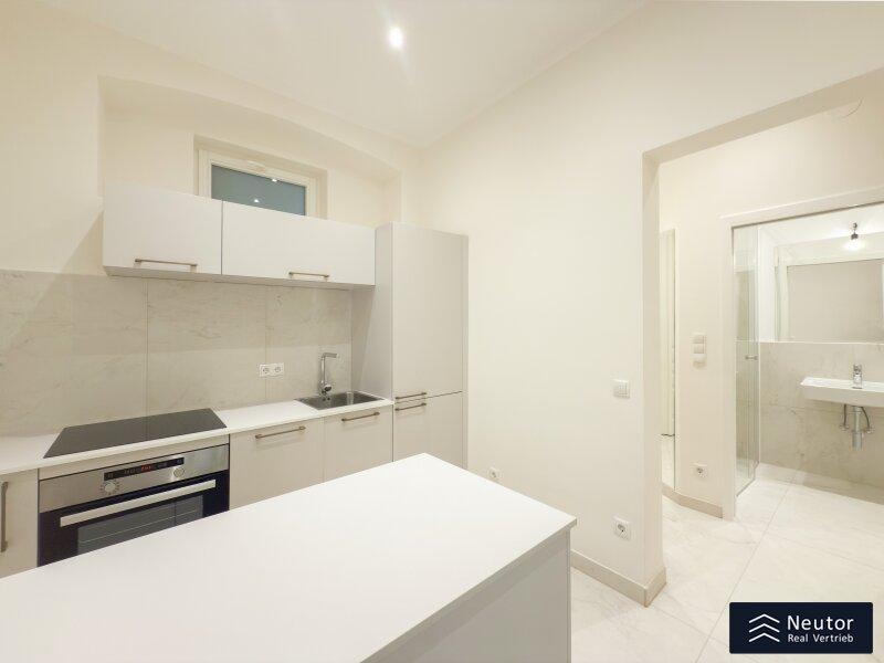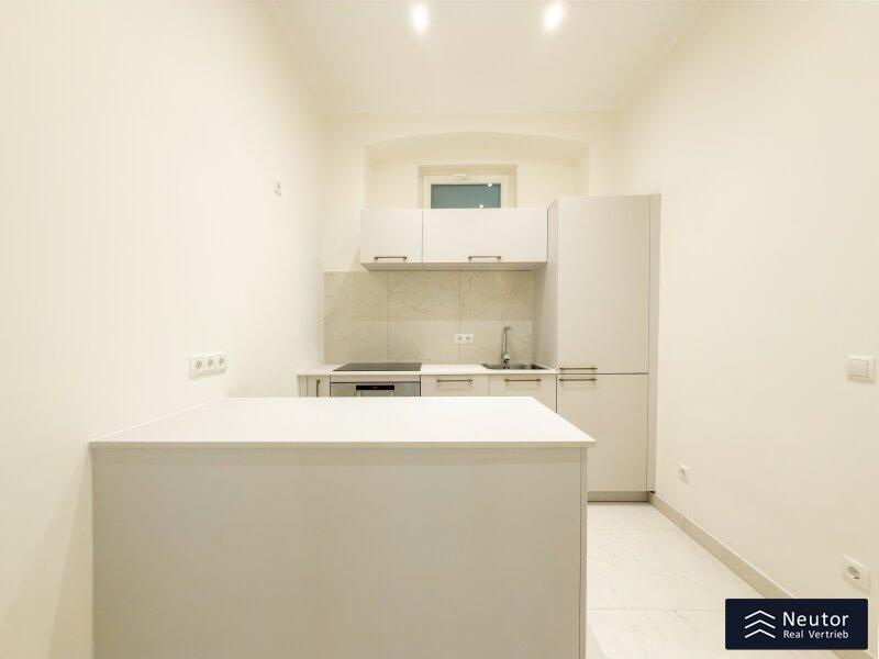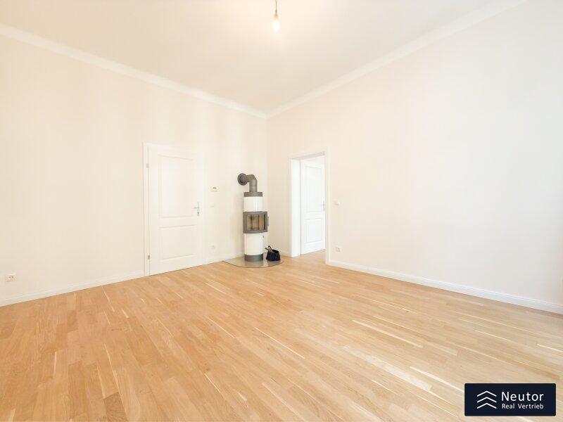 Diese hochwertig ausgestattete Wohnung befindet sich in einem sorgfältig revitalisierten Altbau und bietet Ihnen ein Wohnambiente, das höchsten Ansprüchen gerecht wird. Bereits beim Betreten des Hauses werden Sie von dem eleganten Charme des Gebäudes empfangen. Über nur wenige Stufen erreichen Sie mühelos Ihre neue Wohlfühloase. Beim Eintritt in die Wohnung gelangen Sie in einen einladenden Vorraum, der ausreichend Platz für eine Garderobe bietet und so für eine angenehme Ordnung im Eingangsbereich sorgt. Auf der linken Seite befindet sich ein modernes, separat gelegenes WC, das mit hochwertigen Fliesen und stilvoller Ausstattung überzeugt. Direkt angrenzend erwartet Sie das geschmackvoll gestaltete Badezimmer, welches mit einer geräumigen Dusche und einer Waschmaschine ausgestattet ist perfekt für höchsten Komfort im Alltag. Die zentral begehbare Küche ist nicht nur funktional, sondern auch ein echtes Highlight der Wohnung. Sie wurde mit hochwertigen Geräten ausgestattet und bietet viel Stauraum sowie eine ansprechende Arbeitsfläche ideal für alle, die gerne kochen und genießen. Als Herzstück dieser charmanten Wohnung gilt das großzügige Wohnzimmer. Dank der großflächigen Verglasung wird der Raum von natürlichem Licht durchflutet und schafft eine helle, freundliche Atmosphäre, in der Sie entspannen und Ihre Zeit genießen können. Besonders hervorzuheben ist der wunderschöne Kamin, der nicht nur für eine wohlige Wärme sorgt, sondern auch für eine gemütliche, einladende Stimmung im Raum sorgt. Der durchdachte Schnitt bietet vielfältige Gestaltungsmöglichkeiten und lädt dazu ein, das Wohnzimmer individuell nach Ihren Wünschen einzurichten. Das geräumige Schlafzimmer bildet einen harmonischen Rückzugsort und wurde bewusst so gestaltet, dass es Ruhe und Geborgenheit vermittelt. Hier können Sie sich entspannen und erholsame Nächte genießen. Diese Immobilie liegt in einem äußerst lebenswerten Bezirk und bietet eine hervorragende Infrastruktur sowie eine angenehme Wohnatmosphäre. Einkaufsmöglichkeiten, öffentliche Verkehrsmittel und zahlreiche Freizeitangebote befinden sich in unmittelbarer Nähe und machen diesen Standort besonders attraktiv.