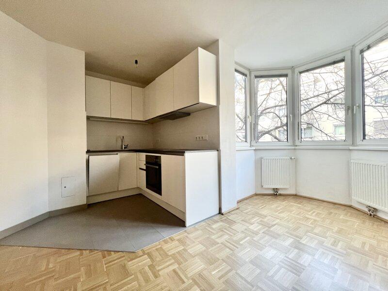 Dieses ca. 40 m2 große Apartment verfügt über einen guten Grundriss und besteht aus Vorraum samt Abstellraum sowie einer großen Wohnküche mit Erker und einem Badezimmer mit WC.