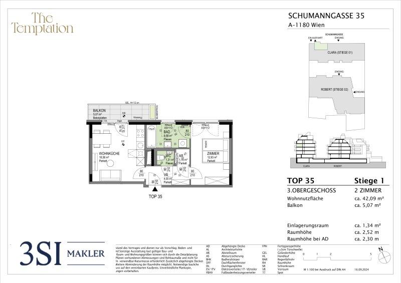 Der guten Ordnung halber halten wir fest, dass, sofern im Angebot nicht anders vermerkt, bei erfolgreichem Abschlussfall eine Provision anfällt, die den in der Immobilienmaklerverordnung BGBI. 262 und 297/1996 festgelegten Sätzen entspricht das sind 3 % des Kaufpreises zzgl. 20 % USt. Diese Provisionspflicht besteht auch dann, wenn Sie die Ihnen überlassenen Informationen an Dritte weitergeben. Letztlich weisen wir darauf hin, dass wir als Doppelmakler tätig sind und ein familiäres/wirtschaftliches Naheverhältnis zwischen der 3SI Makler GmbH und der Verkäuferin besteht.