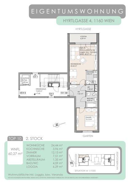 Die Wohnung liegt in der Hyrtlgasse im 16. Wiener Gemeindebezirk. Die Geschäfte des täglichen Bedarfs sind fußläufig erreichbar und in unmittelbarer Umgebung, wie etwa Billa und Spar in 5 Gehminuten. Auch diverse Restaurants und Lokale befinden sich in Gehweite.