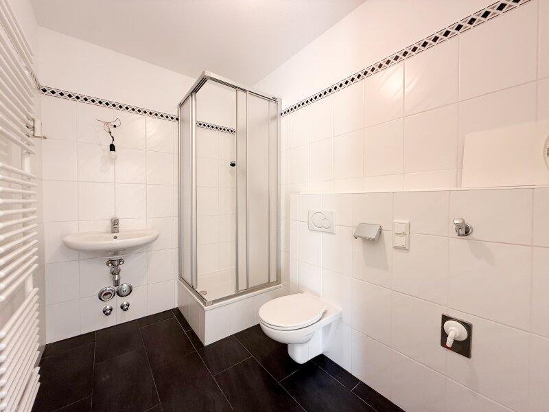 Das Badezimmer ist mit Dusche und WC ausgestattet.