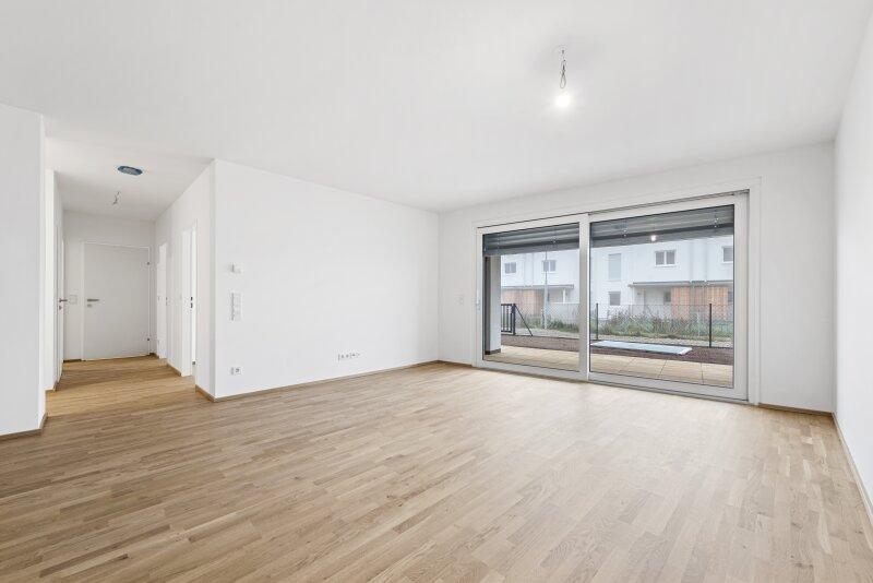 Fahrradabstellplätze, Kinderwagenraum, Spielplatz mit Pergola und Sitzmöglichkeiten sowie eine Tiefgarage vervollständigen das Angebot des durchdachten, modernen und nachhaltigen Projekts. Ein Tiefgaragenplatz ist zu erwerben (ab € 17.500,).