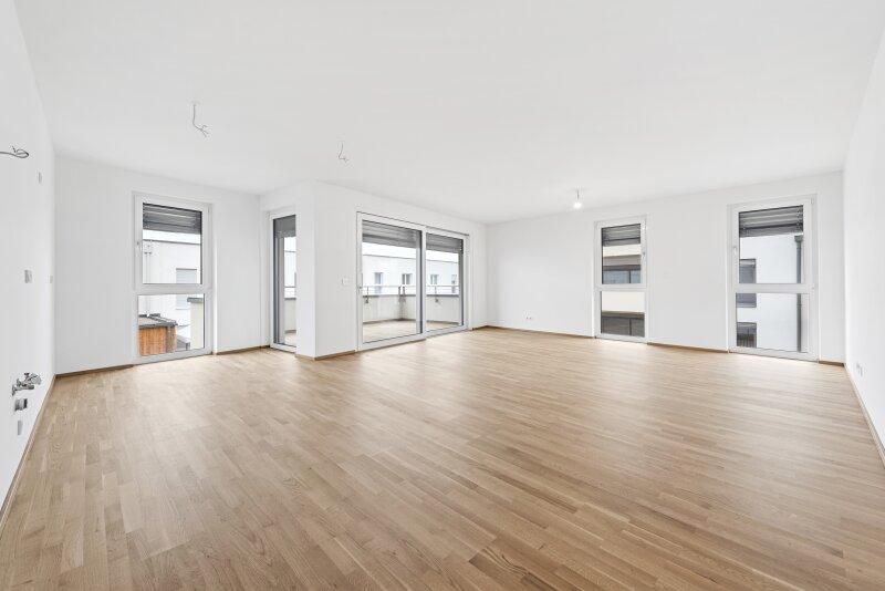 Fahrradabstellplätze, Kinderwagenraum, Spielplatz mit Pergola und Sitzmöglichkeiten sowie eine Tiefgarage vervollständigen das Angebot des durchdachten, modernen und nachhaltigen Projekts. Ein Tiefgaragenplatz ist zu erwerben (ab € 17.500,).