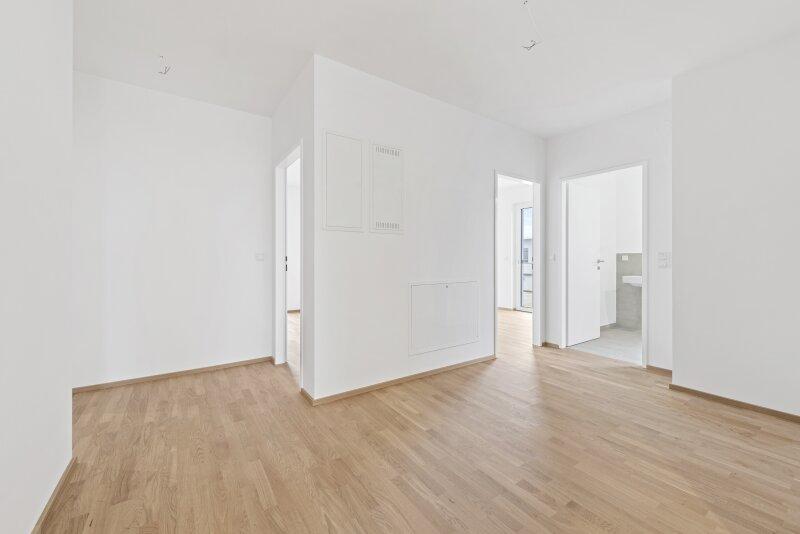 Fahrradabstellplätze, Kinderwagenraum, Spielplatz mit Pergola und Sitzmöglichkeiten sowie eine Tiefgarage vervollständigen das Angebot des durchdachten, modernen und nachhaltigen Projekts. Ein Tiefgaragenplatz ist zu erwerben (ab € 17.500,).