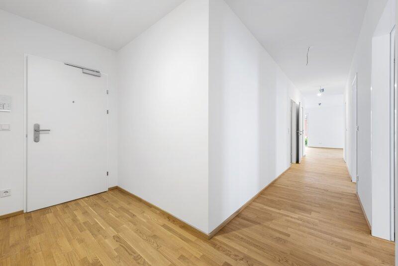 Fahrradabstellplätze, Kinderwagenraum, Spielplatz mit Pergola und Sitzmöglichkeiten sowie eine Tiefgarage vervollständigen das Angebot des durchdachten, modernen und nachhaltigen Projekts. Ein Tiefgaragenplatz ist zu erwerben (ab € 17.500,).