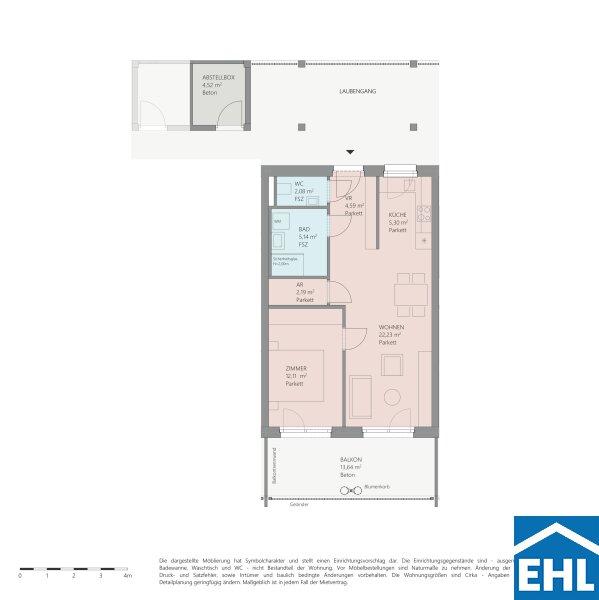 Die smarten Grundrisse und die Freiflächen der 49 Wohnungen sorgen hier für höchsten Wohnkomfort mit Wohlfühlfaktor. Zusätzlich zu der großzügigen Zimmeraufteilung verfügt jede Wohnung auch noch über einen Lagerraum, der direkt gegenüber der Wohnung über den Laubengang begehbar ist. Die Wohnungen verfügt außerdem über eine Fußbodenheizung, welche für eine angenehme Raumtemperierung sorgt.