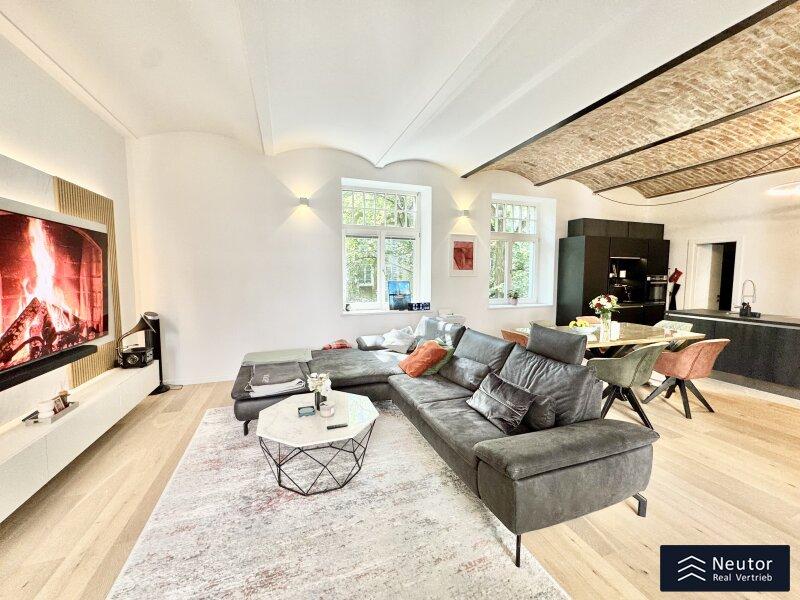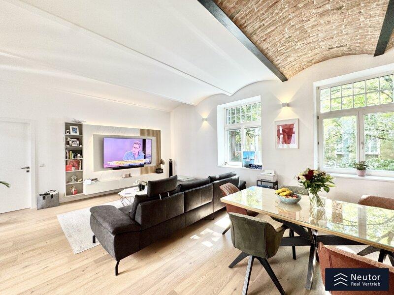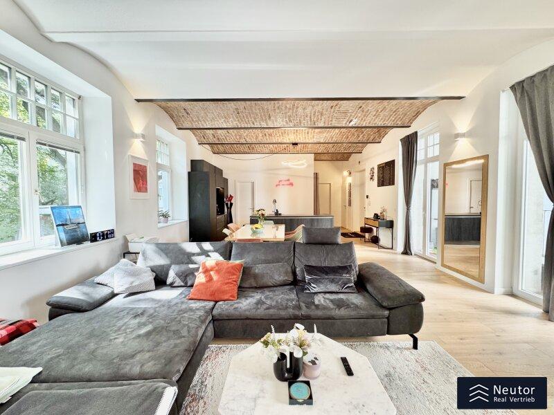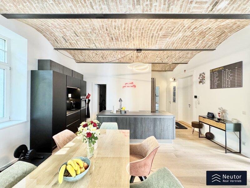 Zum Verkauf gelangt diese einzigartige, rund 97m² große Loft-Wohnung mit Balkon in Wien Favoriten. Dieser Wohntraum mit WOW-Faktor befindet sich in der 2. Etage eines gepflegten Altbaus - liebevoll eingebettet im Hofhaus einer alten Kofferfabrik. Das großzügige 2 Zimmer Apartment verfügt über eine absolute Hofruhelage. Die Immobilie wurde 2018 aufwendig saniert und verfügt über ein Wohngefühl, das seinesgleichen sucht. Der offene Grundriss und die liebevoll freigelegte Ziegeldecke verleihen dem Objekt ein urbanes und trendiges Ambiente. Die hochwertige Tischlerküche und das stilvolle Badezimmer runden das Gesamtbild stimmig ab.