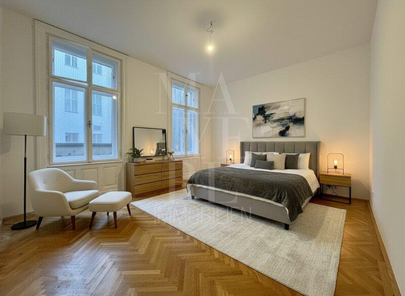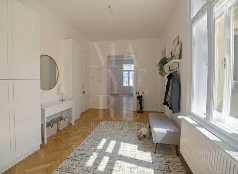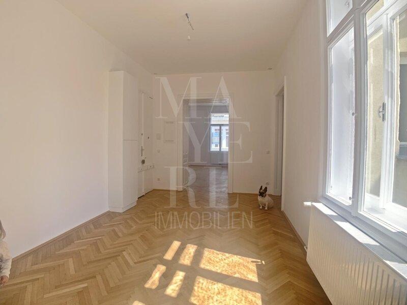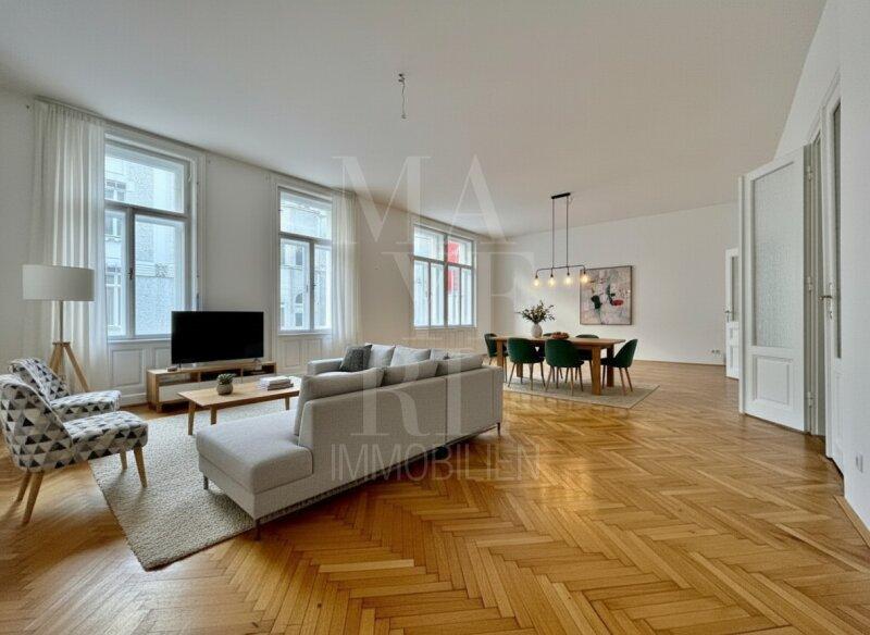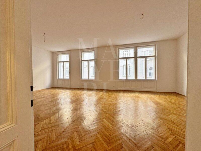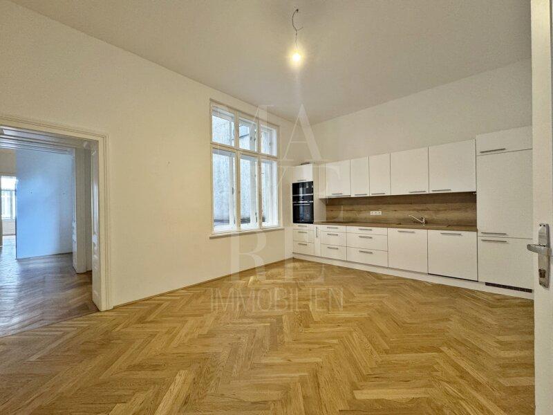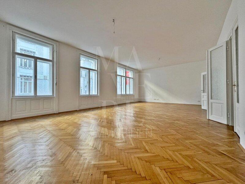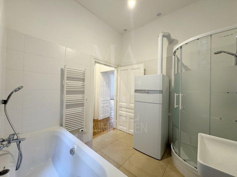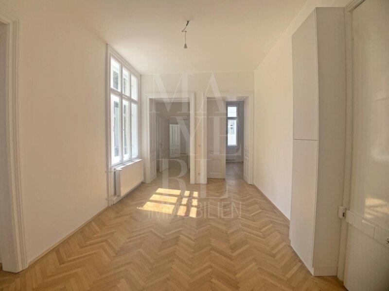 sehr geräumiges Vorzimmer (14 m²) , 2 separate Toiletten, Badezimmer mit Wanne und Dusche, im hinteren Teil der Wohnung befindet sich eine große Wohn-Essküche (neuwertig mit allen Geräten) mit 17 m², dahinter ein sehr groß Kabinett (12 m²) welches man als Arbeitszimmer benutzen kann, 1 hofseitiges Schlafzimmer. Im vorderen Teil der Wohnung befinden sich ein sehr großer Salon mit 57 m², (dieser kann auch wieder in 2 Räume getrennt werden).