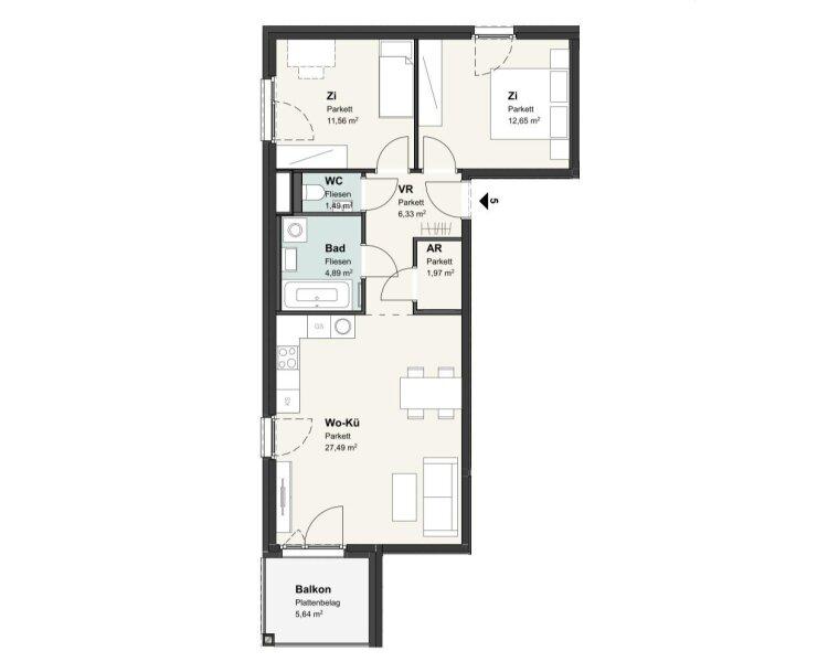 Die ca. 66,38m²-Wohnfläche bietet wie folgt: