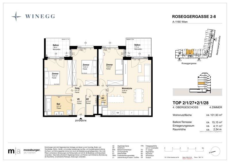 In der Roseggergasse 28, nahe des Wilhelminenbergs in 1160 Wien, entstehen insgesamt 124 exklusive Eigentumswohnungen. Die Wohnflächen variieren zwischen 39 und 245 m² und bieten zwischen 2 und 6 Zimmern. Darüber hin-aus bereichern private Freibereiche wie Eigengärten, Balkone, Terrassen, Loggien und spektakuläre Dachterrassen mit Blick auf die umliegenden Wiener Berge das Wohnerlebnis.