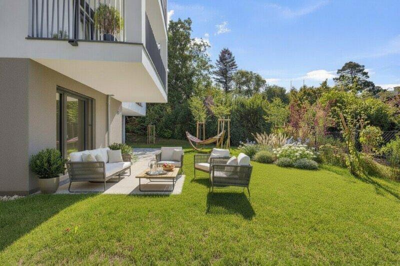 RESERVIERUNG floé 225 - letzte freie Gartenwohnung: 3 Zimmerwohnung mit 3 Terrassen und 179m2 Eigengarten - Objektnr. 5559677