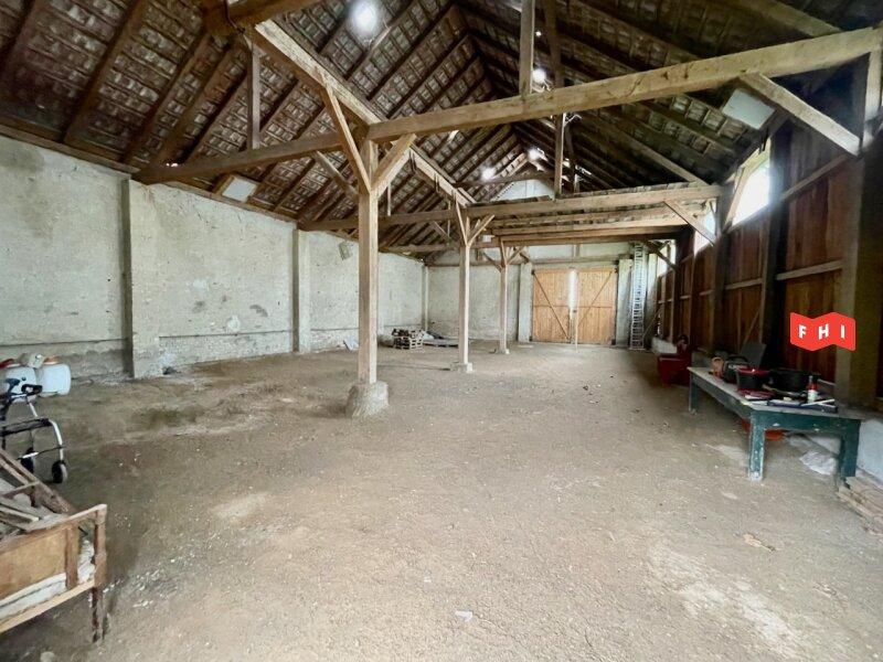 überdachte Einfahrt mit Holztreppe zum Dachboden ca. 16,91m², Reithalle/Scheune ca. 228m², Dachboden, Flugdach ca. 77m², Miststätte (betoniert)