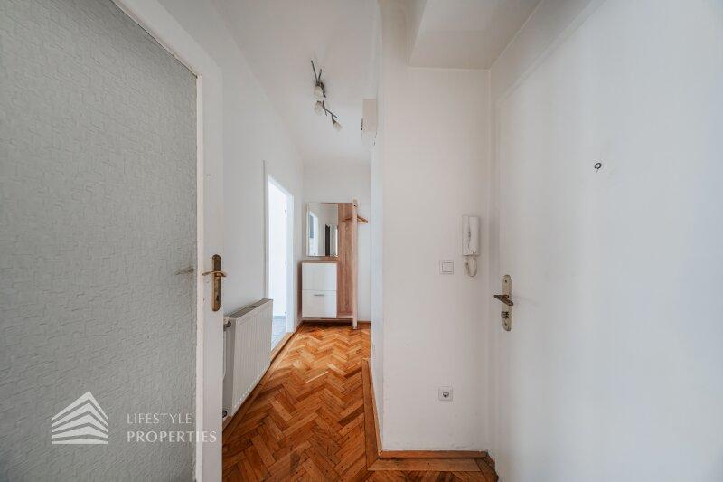Sie befindet verfügt über ca. 34 m² und befindet sich im 3. Stock eines im Jahr 1936 erbauten Altbaus, welcher zwei Stiegen mit insgesamt 28 Wohneinheiten umfasst.