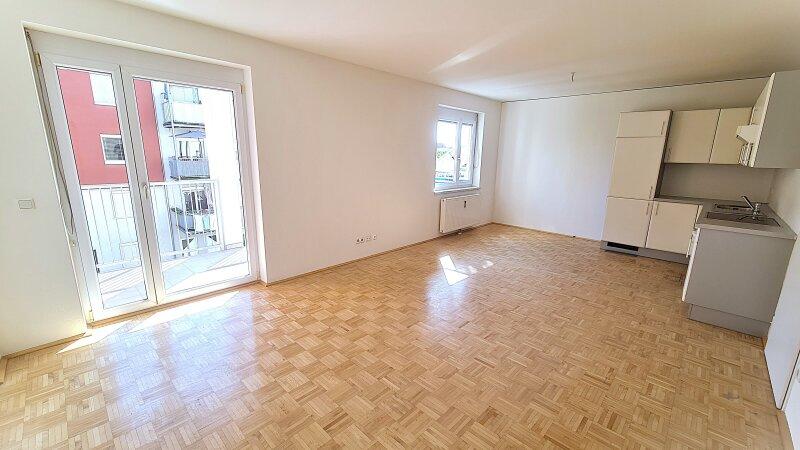 - zentrales Wohn-Esszimmer mit Küche 23m²