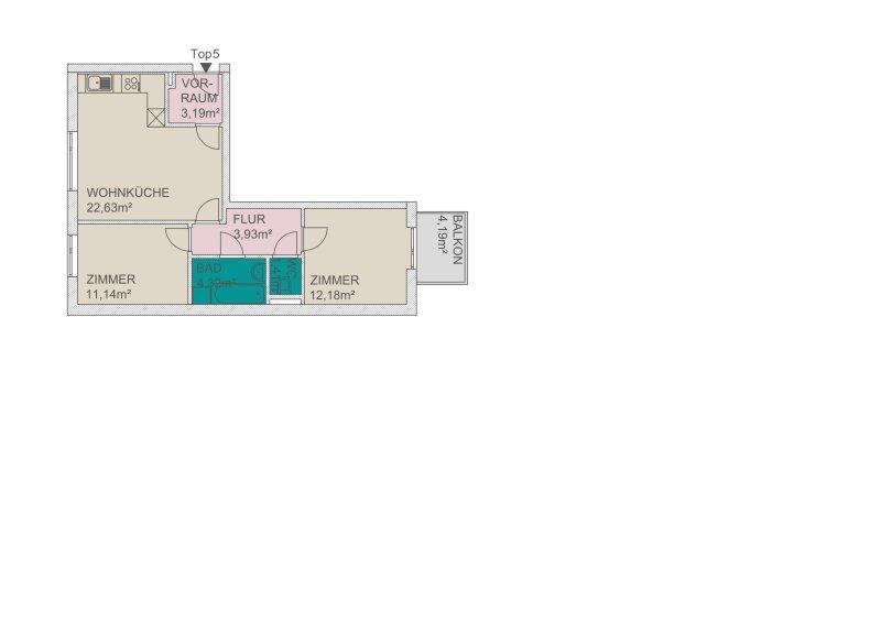 Die Raumaufteilung ist wirklich hervorragend: Alle Zimmer zentral begehbar! Die Wohnfläche beträgt 49,1m² zuzüglich Nebenflächen und teilt sich wie folgt auf: