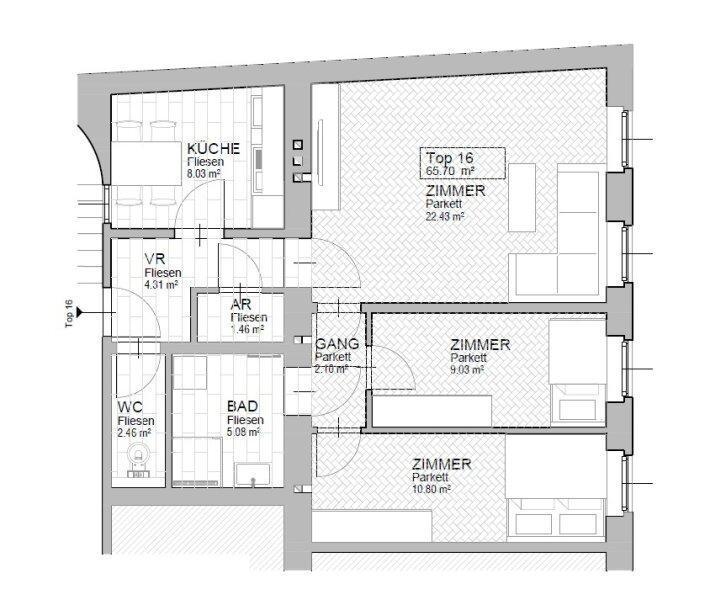 Räumlichkeiten (2. Etage  Treppenhaus 1, Top 16)