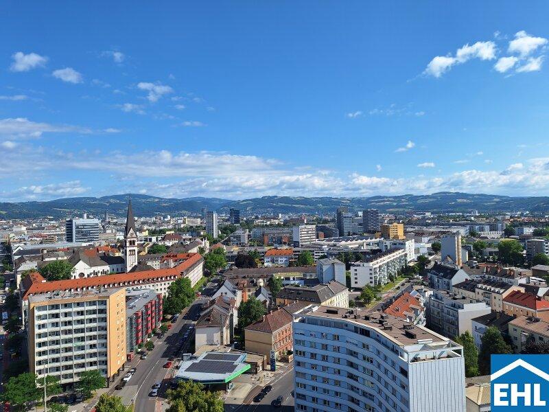 Sie genießen spektakuläre Ausblicke über Linz durch großzügige Fensterflächen, die Licht und Weite in Ihr Zuhause bringen.