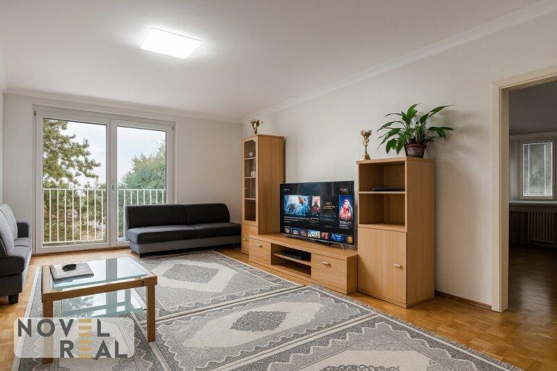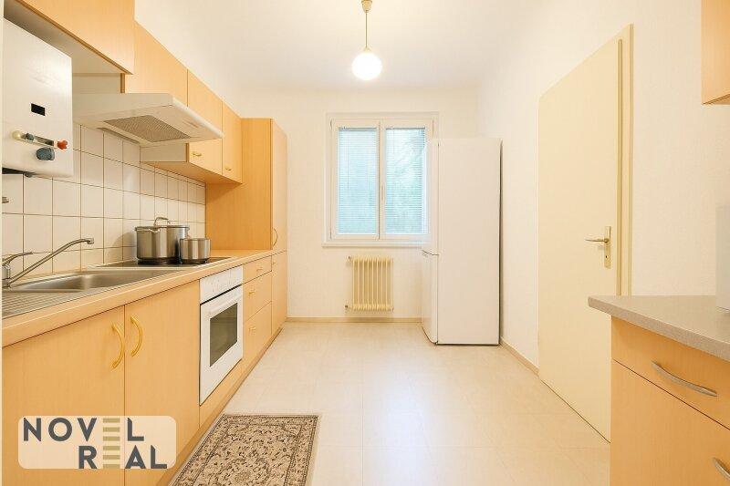 Die Küche ist mit allen Geräten ausgestattet und bietet ausreichend Platz für den täglichen Komfort. Das geräumige Schlafzimmer ist lichtdurchflutet und ruhig gelegen ideal für erholsamen Schlaf. Das gemütliche Wohnzimmer öffnet sich zum Balkon mit grünem Ausblick und lädt zum Verweilen ein.