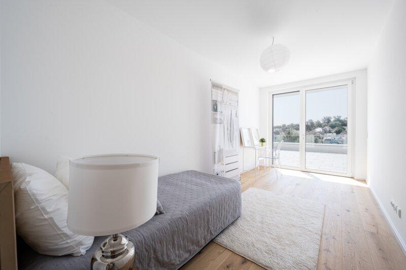 Von allen Schlafräumen, sowie dem Wohn-Essbereich gelangen sie direkt auf die südseitge Terrasse, welche einen sensationellen Blick auf die Stadt und die umliegende Hügellandschaft eröffnet.