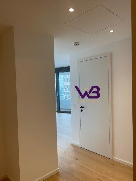 Lebensqualität, die alles andere überragt, 2 Zimmer Wohnung mit Balkon im Erstbezug mit wunderschönem Kahlen-Berg und Donau-Blick! Die westseitige Wohnung befindet sich im 12. Obergeschoß des neu errichteten Hauses.