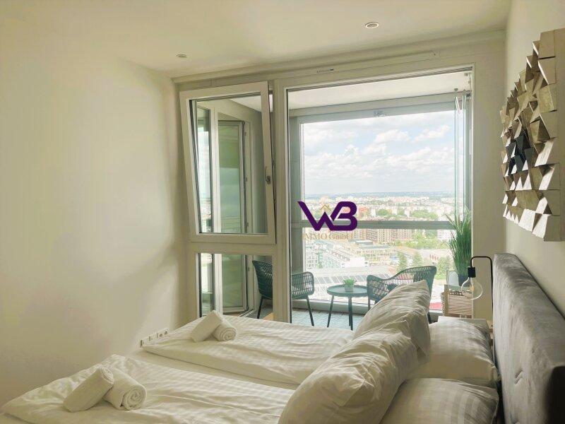 Lebensqualität, die alles andere überragt, 2 Zimmer Wohnung mit Balkon im Erstbezug mit wunderschönem Weit-Blick! Die westseitige Wohnung befindet sich im 22. Obergeschoß des neu errichteten Hauses.