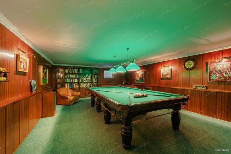 Stilvoller Billardraum mit seltener Kirschholzverkleidung und original russischem Marmorbillardtisch