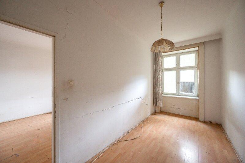 Zum Verkauf steht eine ca. 45 m² große, sanierungsbedürftige 2-Zimmer-Altbauwohnung im Erdgeschoss eines klassischen Wiener Altbaus. Die Immobilie bietet viel Potenzial für kreative Köpfe und Investoren.