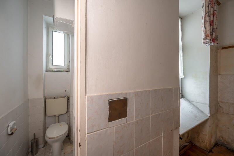 Die Wohnung befindet sich in sanierungsbedürftigem Zustand und wird verkauft, wie sie liegt und steht. Das Objekt verfügt über einen Gasanschluss, jedoch über keine Heizung.