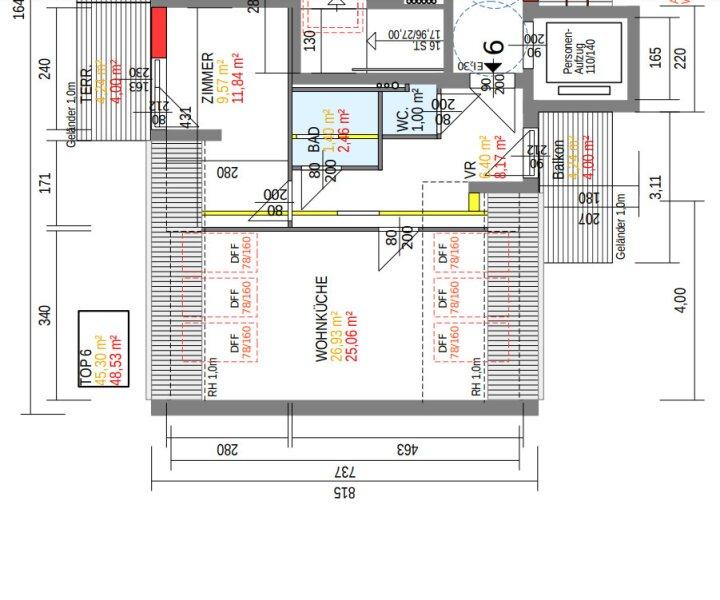 Raumaufteilung: Top 6, 2. Etage (mit Lift)